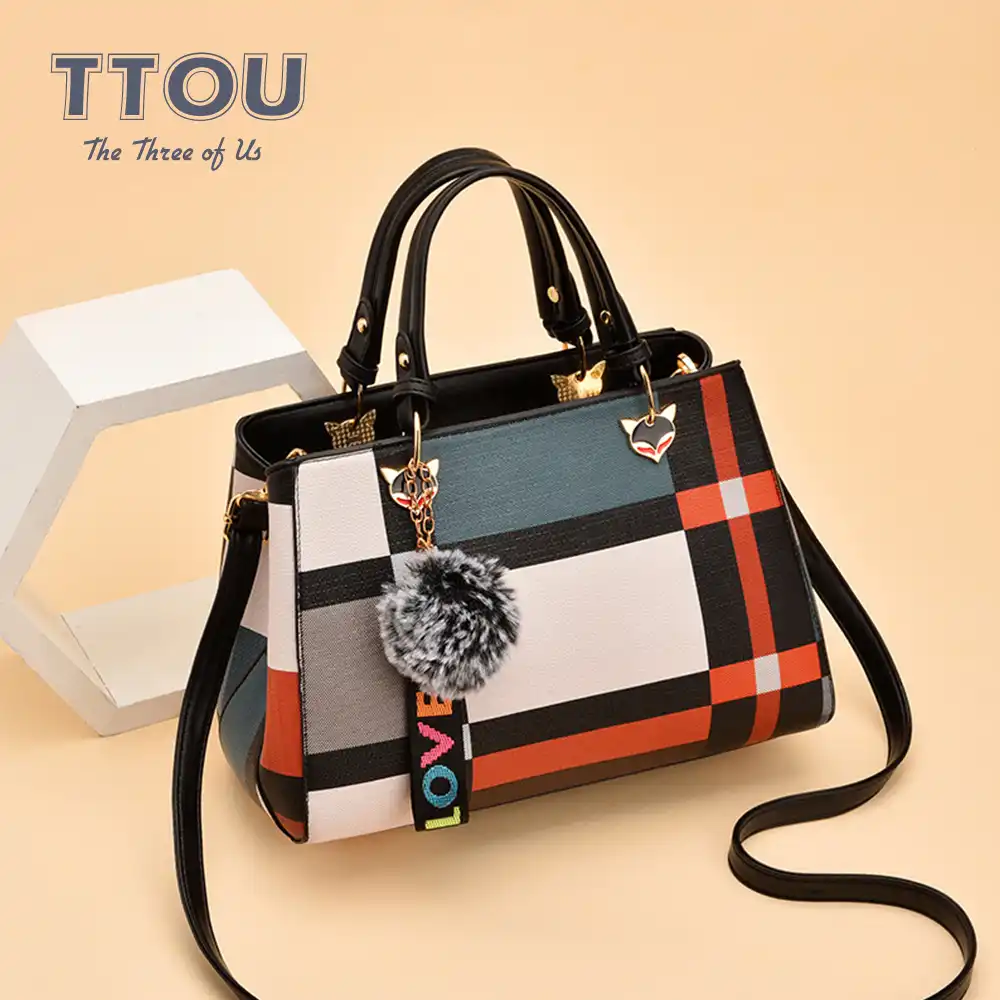 Sacs A Main En Cuir D Unite Centrale De Grande Capacite Avec Le Sac A Bandouliere De Modele De Plaid De Boule De Fourrure Pour Les Femmes Sacs A Bandouliere Sauvages Sac Fourre