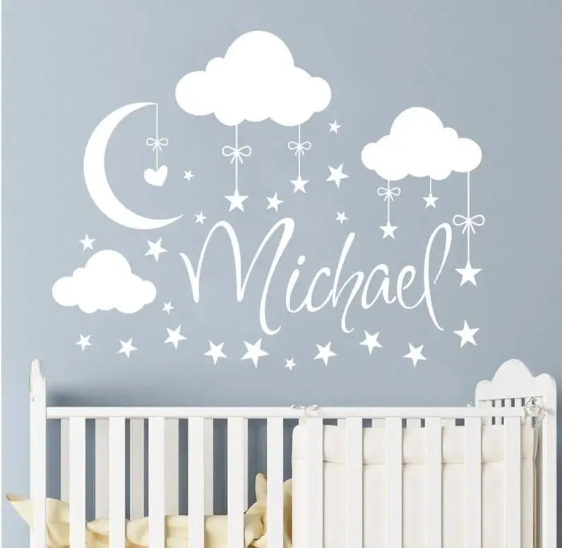 Autocollant Mural Etoiles Lune Nuages Autocollant Personnalise Pour Chambre A Coucher Nom Personnalise En Vinyle Mural Mural Pour Pepiniere Aliexpress