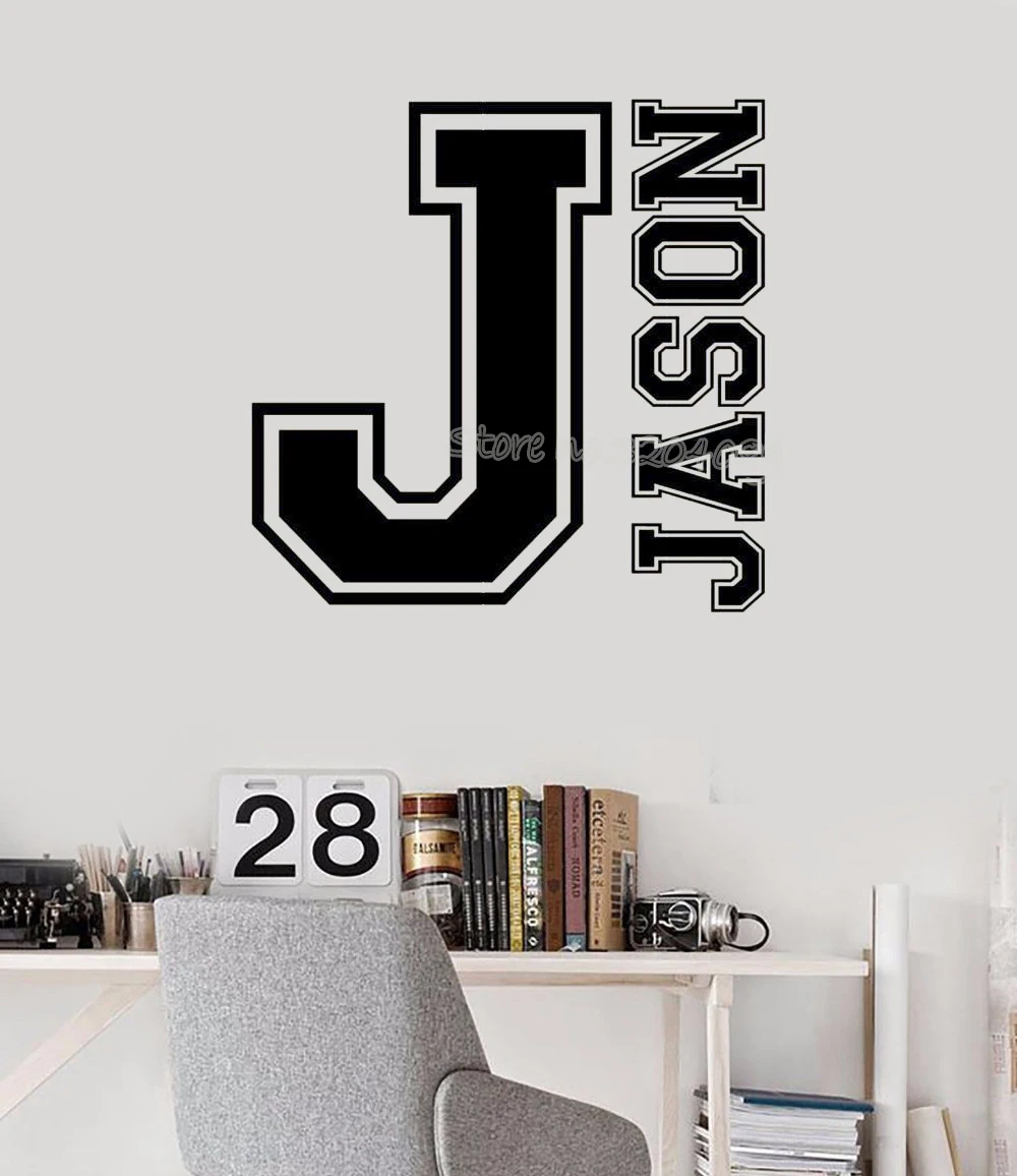 Sport Monogramme Varsite Lettre Nom Initial Autocollant Mural Nom Personnalise Personnalise Vinyle Autocollant Pour Enfants Chambre Pepiniere Murale Ea6 Aliexpress
