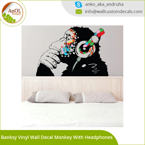 Personnalise Amovible Enfants Maison Decor Salle De Bain Vinyle Sticker Mural Buy Vinyl Wall Decal Monkey With Headphones Wall Decal Street Art Graffiti Sticker Product On Alibaba Com