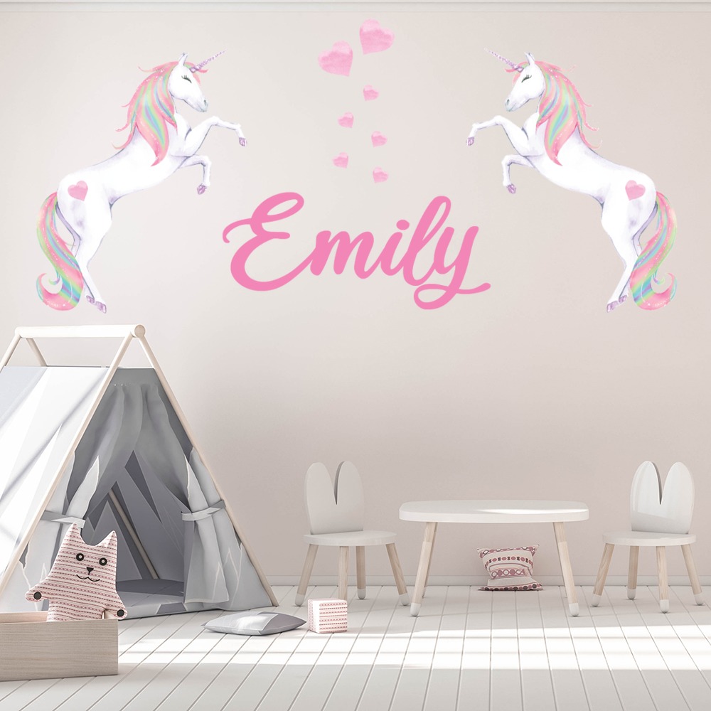 Nom Dusage Licornes Et Coeurs Sticker Muraux Personnalise Sticker Ws Ebay