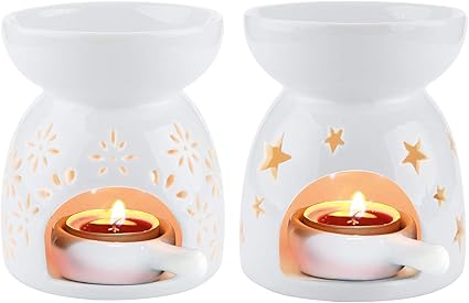 Comsaf Bruleurs A Huile Essentielle Ceramique Aroma Lampe Avec Cuillere A Bougie Lot De 2 Bruleur Bougie De Porcelaine Blanc Petit Porte Bougie Ceramique Diffuseur Motif Fleur Etoile Amazon Fr Cuisine