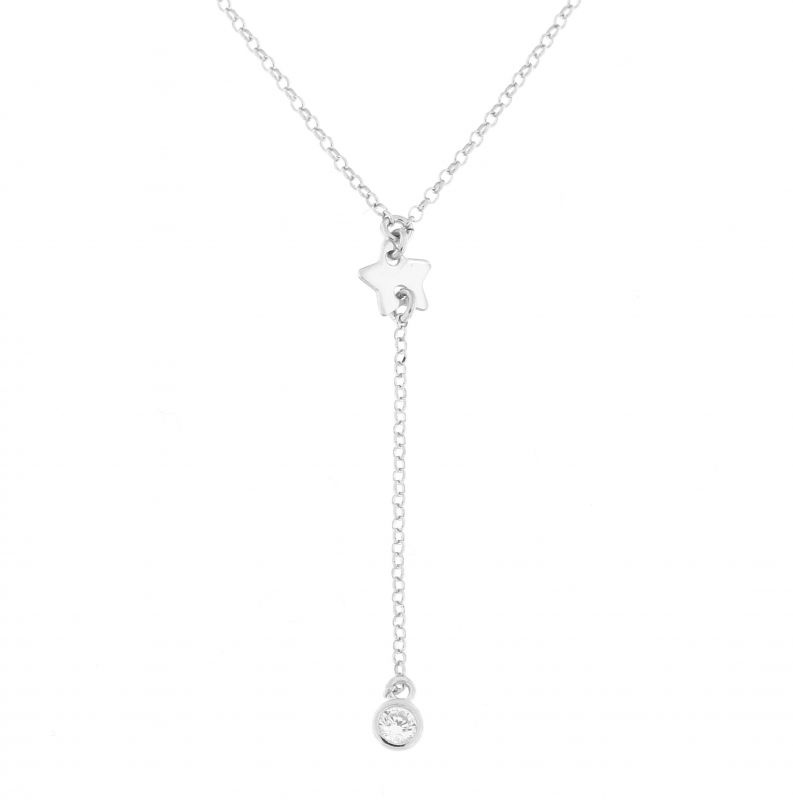Collier Argent Rhodie Etoile Et Oxyde De Zirconium Pendant Ref
