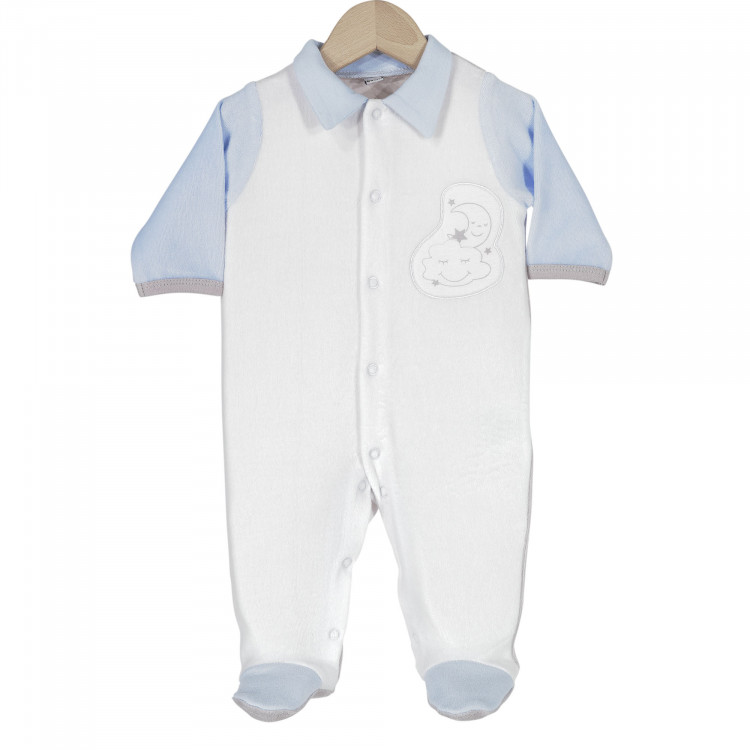 Pyjama Bebe Garcon Velours Blanc Col Et Poches En Pique Babystock