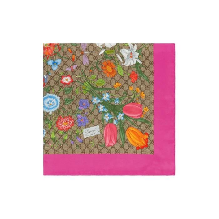 Foulard Imprime Gg Flora En Soie Beige Pink Gucci Femme Printemps Com