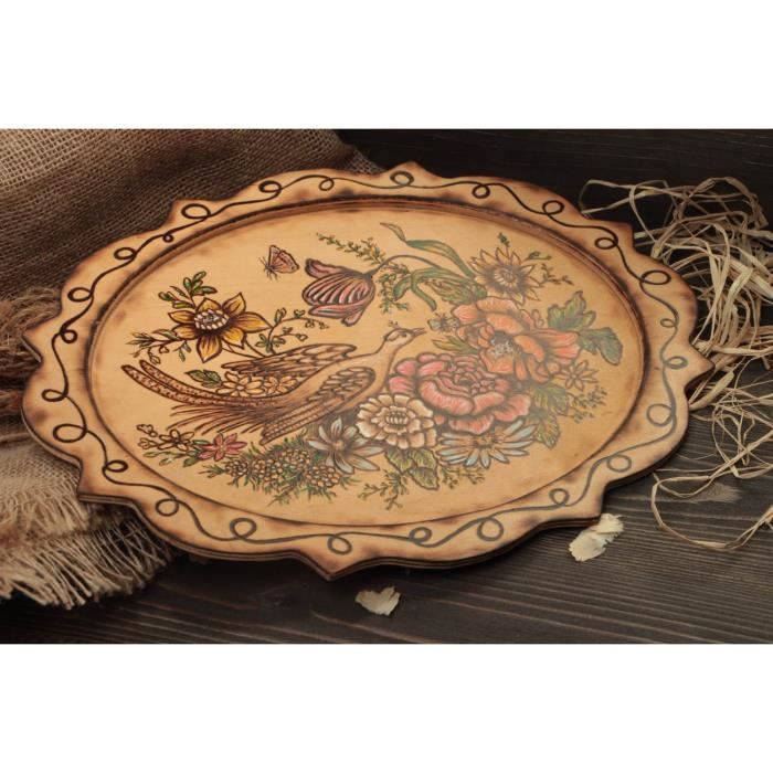 Assiette Deco Originale Fait Main Assiette En Bois Peinte Deco Cuisine Achat Vente Objet Decoratif Cdiscount