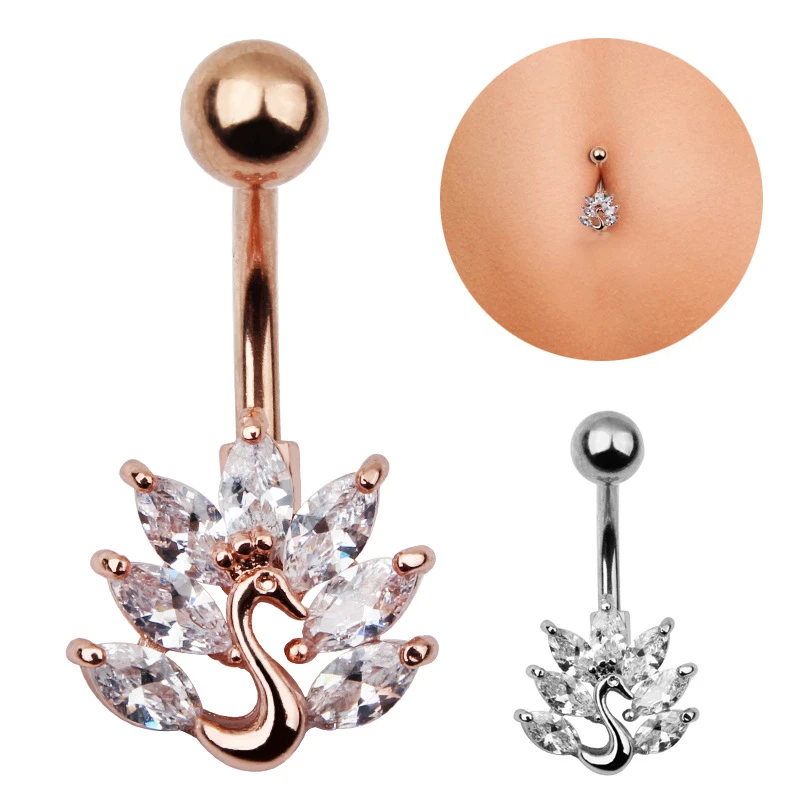 1pc Noble Bijoux Peacock Belly Piercing Nombril Rose Gold Belly Rings Navel Piercing Ombligo Sexy Belly Dance Ornament Jewelry Aliexpress
