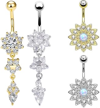 Eqlef Piercing Nombril Acier Chirurgical Anneau De Nombril Goutte Anneau De Piercing Au Nombril Fleur Pour Les Femmes Et Les Filles Bijoux Ombilical Lot De 4 Amazon Fr Jeux Et Jouets