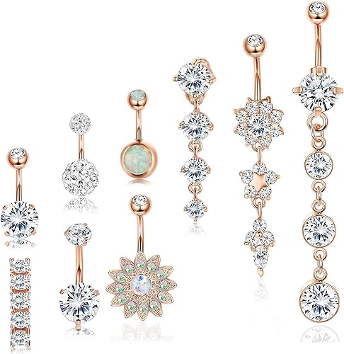 Yadoca 9 Pieces 14g Piercing Nombril Pour Femmes Filles Piercing Anneaux Nombril Incruste Cz Ensemble Navel Piercing Bijoux Piercing Nombril Femme Acier Inoxydable Argent Or Rose Amazon Fr Bijoux