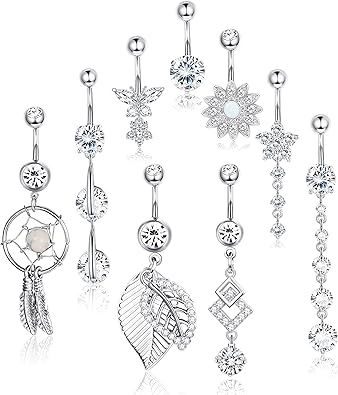 Yadoca 9 Pcs 14g Piercing Nombril Acier Inoxydable Dangle Belly Button Navel Piercing Argent Femmes Filles Courbe Au Nombril Barbell Corps Bijoux Piercing Cz Incruste Amazon Fr Bijoux
