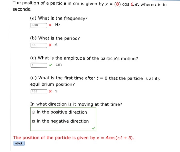 Solved The Position Of A Particle Is Given By X 7 0 Cm Chegg Com