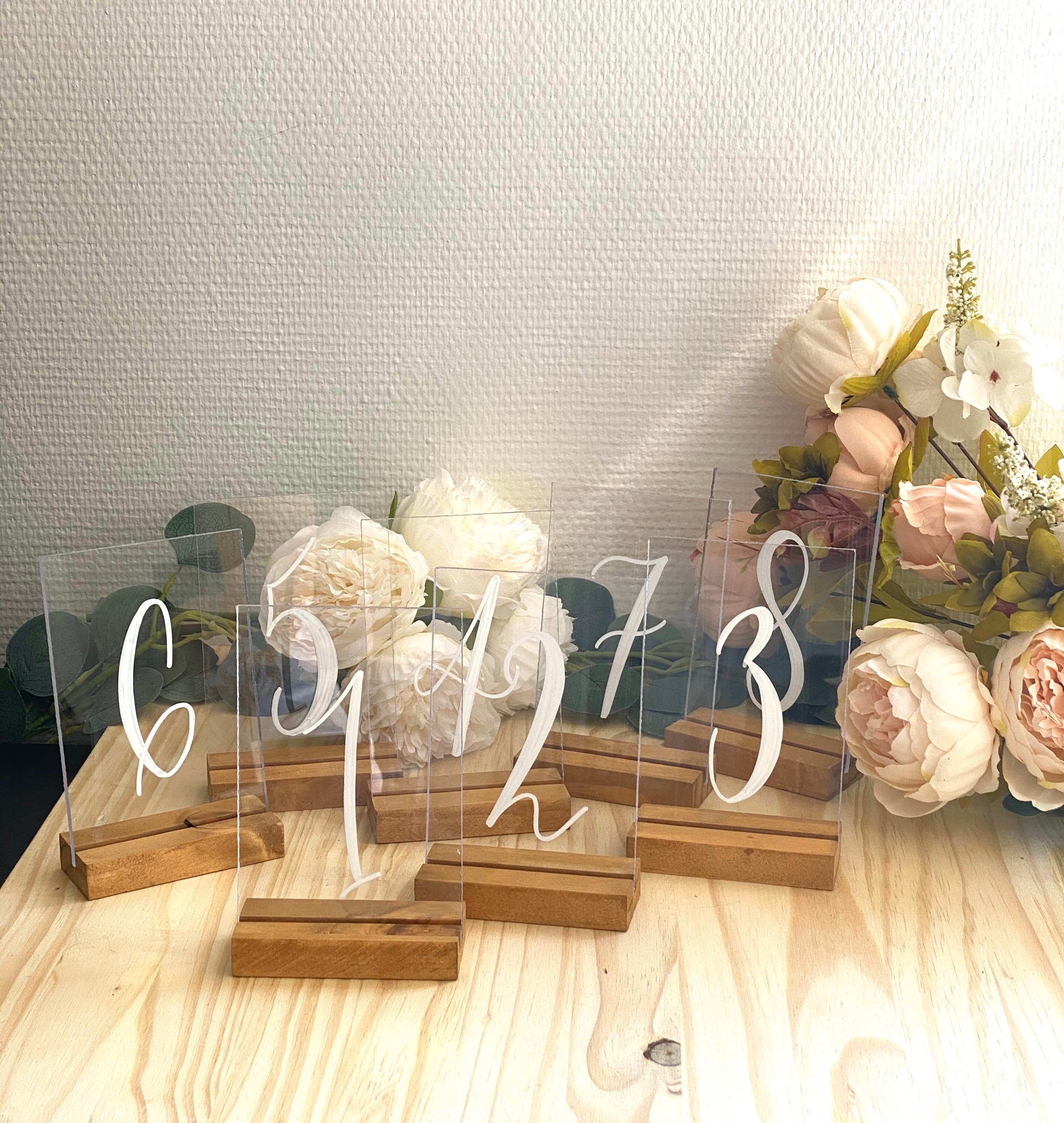 Acrylic Table Number Plate Simple Number Center Of Table Decor Wooden Base Optional Wood Tint Of Your Choice