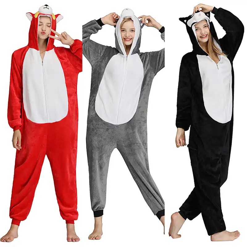 Onesie Husky Chien Adulte Homme Femmes Animal Pyjama Costume Flanelle Chaud Pyjama Doux Une Piece Hiver Combinaison Aliexpress