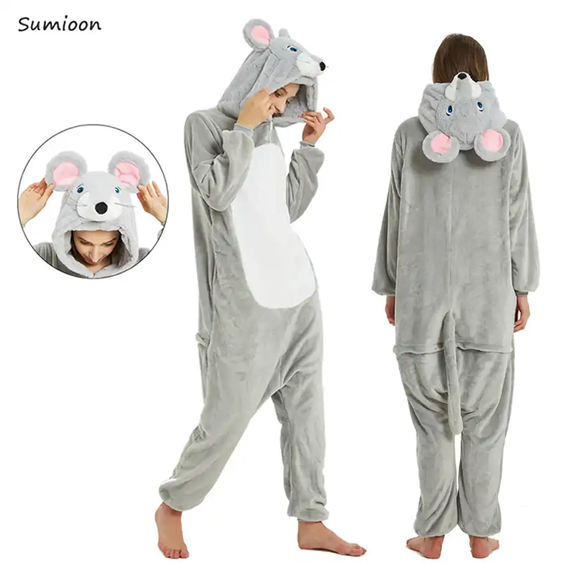 Adulte Flanelle Kigurumi Animal Costume Gris Rat Souris Femmes Ou Hommes Onesies Pyjama Pour Halloween Carnaval Fete Aliexpress