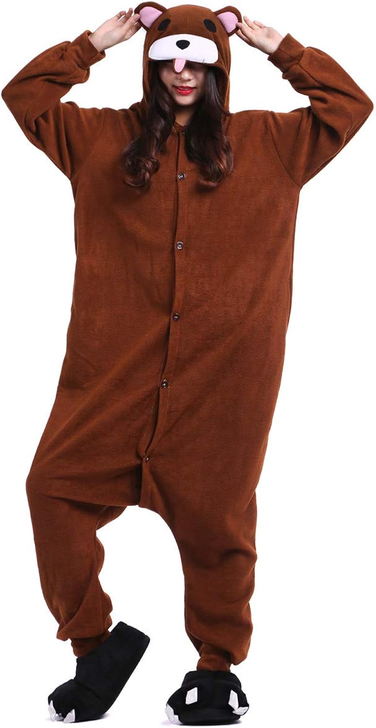 Fandecie Costume Animal Costume Animal Pyjamas Pyjamas Combinaison Kigurumi Ours Brun Femme Homme Cosplay Adulte Pour Carnaval Animal Carnaval Halloween Vetements De Nuit Vetements