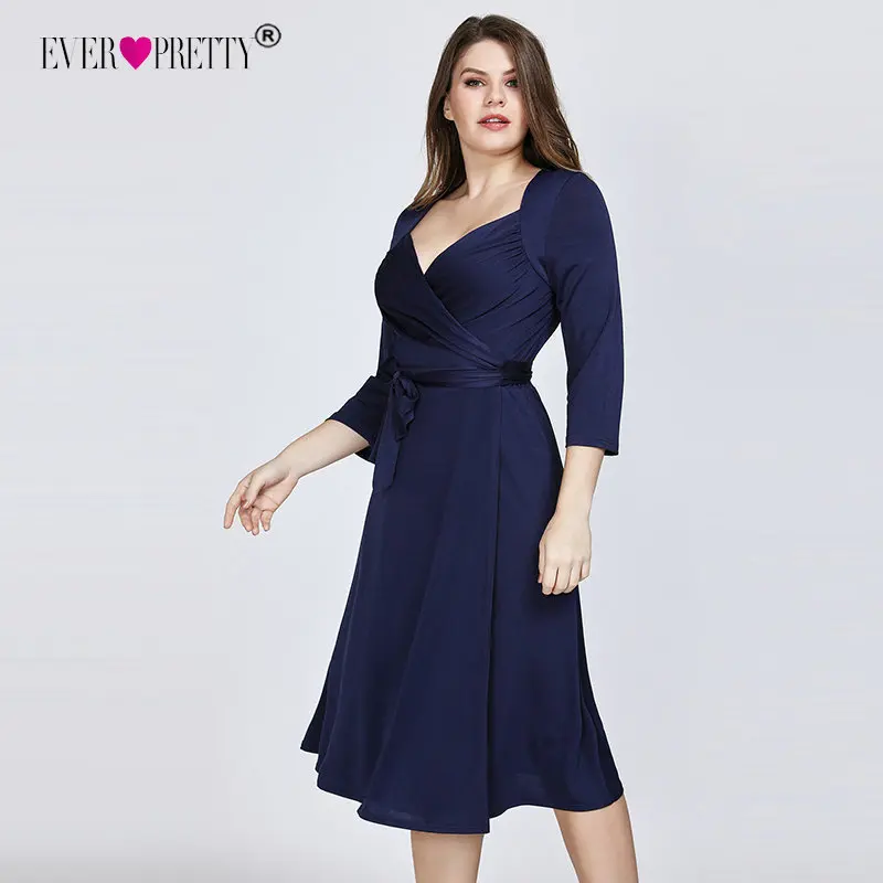 Ever Pretty Grande Taille Bleu Marine Robes De Cocktail A Ligne Genou Longueur A Manches Courtes En Mousseline De Soie Elegante Courte Robes De Soiree Ez Aliexpress