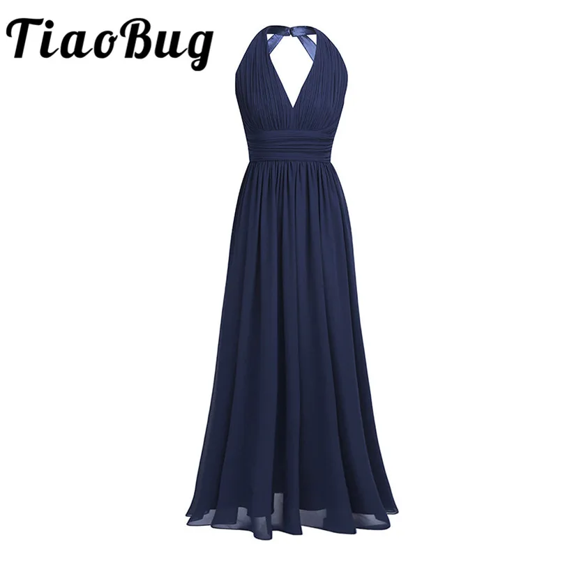 Noir Bleu Marine Sarcelle Bordeaux Longues Robes De Demoiselle D Honneur 5 Couleurs Grande Taille Robe De Bal Femmes Dames En Mousseline De Soie Licou Col En V Robe Aliexpress