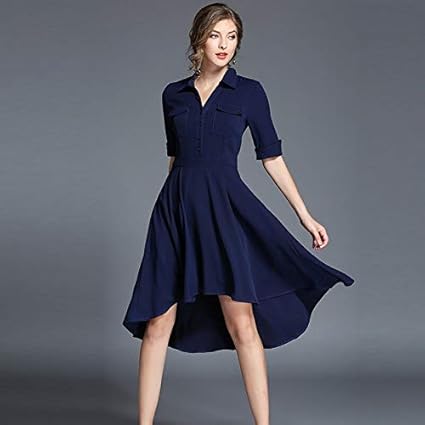 Qunlianyi Robe De Mariee Grande Taille Mousseline De Soie Bleu Marine Femmes Chemise Robe Demi Manches Tourner Vers Le Bas Col De Bureau Travail Casual Robes Feminines Amazon Fr Sports Et Loisirs