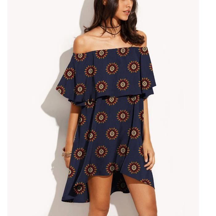 Bleu Marine Robe De Femme Grande Taille Court Col Bateau Florale Imprime Manche Court D Ete Boheme Decontracte Epaule Nu M 2xl Bleu Achat Vente Robe Soldes Sur Cdiscount Des Le