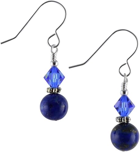 Lapis Lazuli Pierre Precieuse Cristal Swarovski Bleu Et Argent Sterling Boucles D Oreilles Pendantes Avec Boite Cadeau Amazon Fr Bijoux