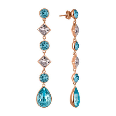 Boucles D Oreilles Pendantes Swarovski En Metal Jaune Et Cristal Bleu 79 Cleor