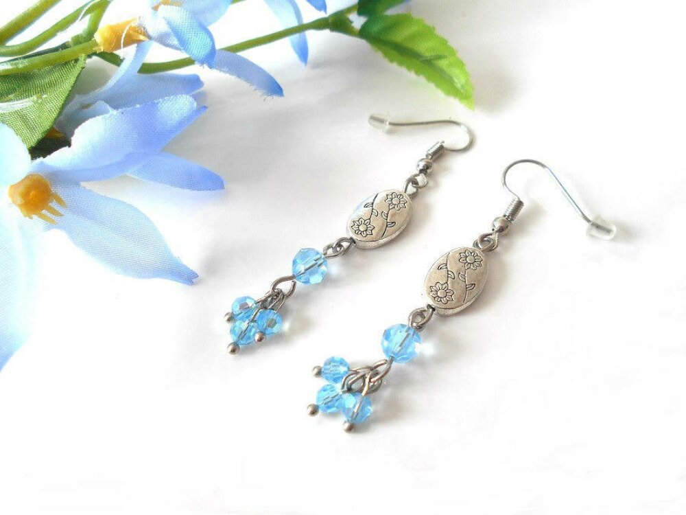 Boucles D Oreilles Pendantes Boucles D Oreilles Bleues Fleurs Ovale Cristal Swarovski Bleu Aquamarine Un Grand Marche