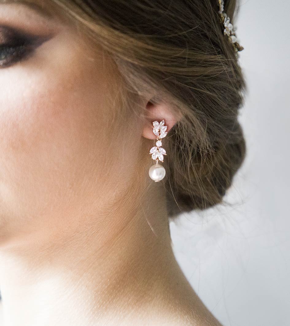 Boucles D Oreilles Mariage Pendantes Perles Nacrees Et Zircon Annalisa