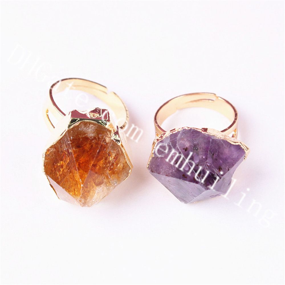 Acheter 10 mm Petite Forme Libre Amethyste Citrine Cristal Point Promesse Bague Plaque Or Cuivre Pierre Precieuse Naturelle Pique Lunette Reglable Anneau De 72 76 Du Emhuiling Dhgate Com