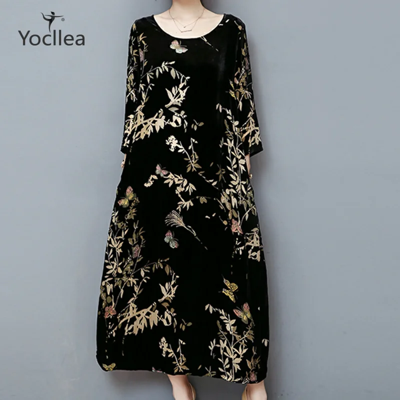 Automne Hiver Grande Taille Femmes Robe Or Velours Robe Femme Vintage Impression En Vrac Expansion Col Rond Longues Robes Vestido Wj565 Aliexpress