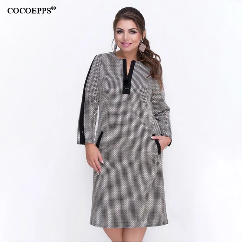 5xl 6xl 19 Automne Grande Taille Femmes Robe Hiver Decontracte Imprime Patchwork Robe De Grande Taille Fermeture Eclair Grandes Tailles Elegant Robes De Fete Aliexpress