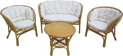 Savino Fiorenzo Set Complet De Salon En Osier Bambou Et Rotin Luna Bahama Naturel Canape Fauteuil Table Amazon Fr Jardin