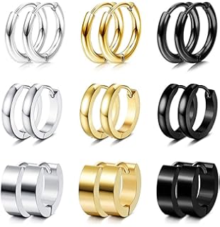 Projewe 12 Paires Creoles Anneau Boucle D Oreille En Acier Inoxydable Pour Hommes Femmes Ronde Zyrconium Clou D Oreille Piercing Cartilage Huggie Boucles Doreilles Cz Argent Noir Or Homme Boucles D Oreilles