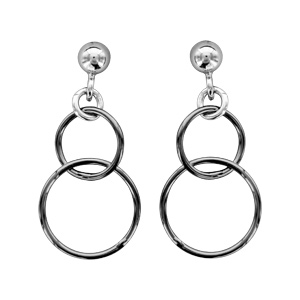 Boucles D Oreilles Pendantes En Argent Rhodie Et Noir 2 Anneaux Emmailles Suspendus Et Fermoir Clou
