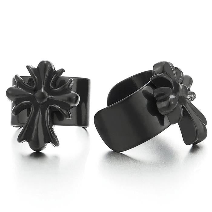 Noir Clip On Anneau Boucles D Oreilles Creoles Avec Croix Pour Homme Femme Acier Inoxydable 1 Paire 31 Achat Vente Boucle D Oreille Noir Clip On Anneau Bo 31