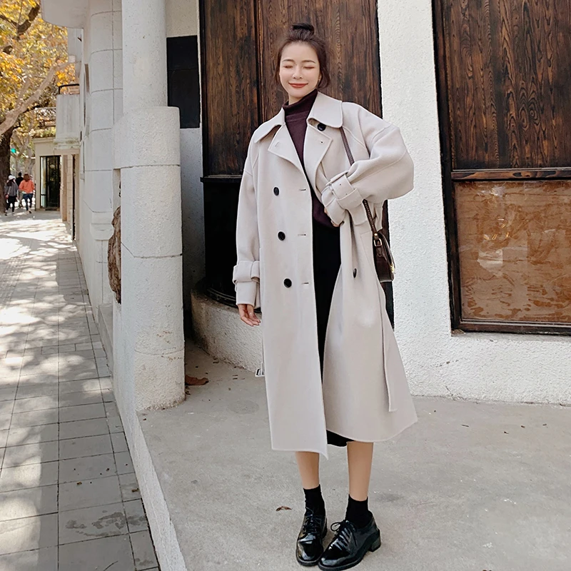 Manteau Laine Femme Manteau Cachemire Long Femmes Manteau Blanc Hiver Manteau Femmes Double Boutonnage Laine Manteau Temperament Banlieue Manteau Leather Bag