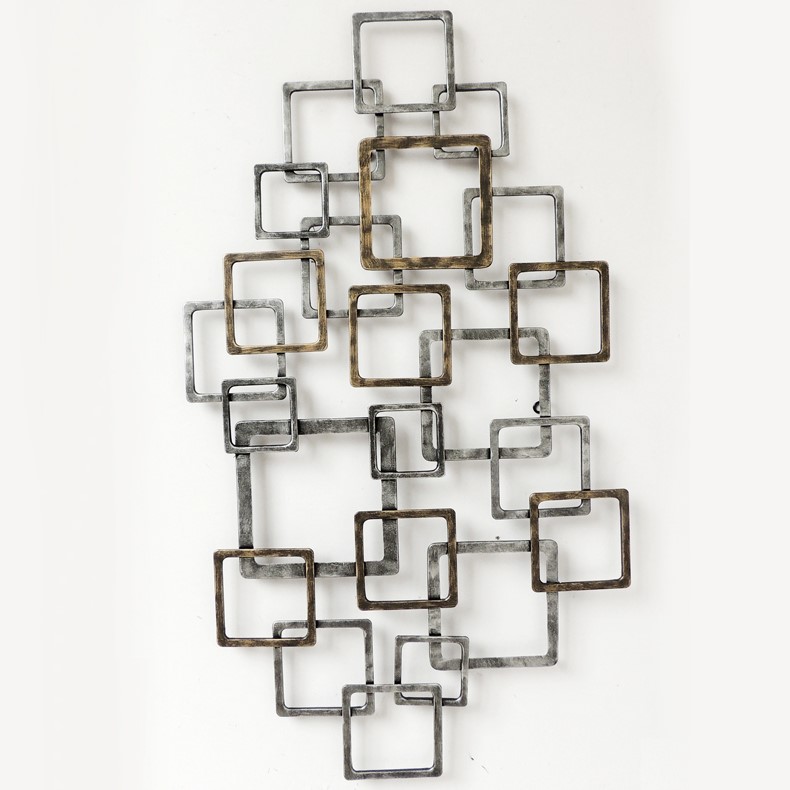 Decoration Murale Sculpture Formes Rectangles Carres Gris Or