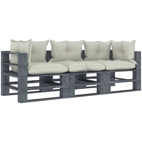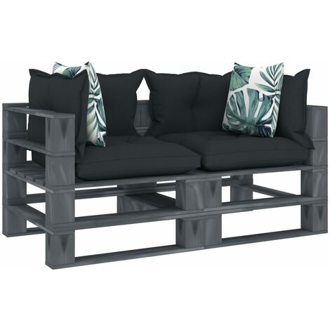 Canape De Jardin Palette Avec Coussins Gris Pinede Vidaxl Leroy Merlin