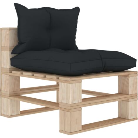 Vidaxl Bois Canape Palette De Milieu Avec Coussins Anthracite Et Fleur Jardin Ebay