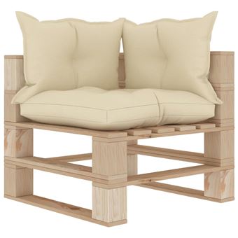 Vidaxl Canape D Angle Palette De Jardin Avec Coussins Creme Bois Mobilier De Jardin Achat Prix Fnac