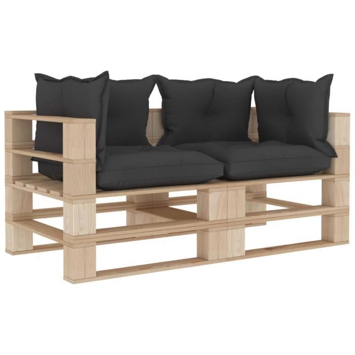Vidaxl Bois Canape Palette A 2 Places De Jardin Avec Coussins Noir Sofa Palette De Terrasse Canape Palette De Patio Exterieur Salon Interieur Amazon Fr Cuisine Maison