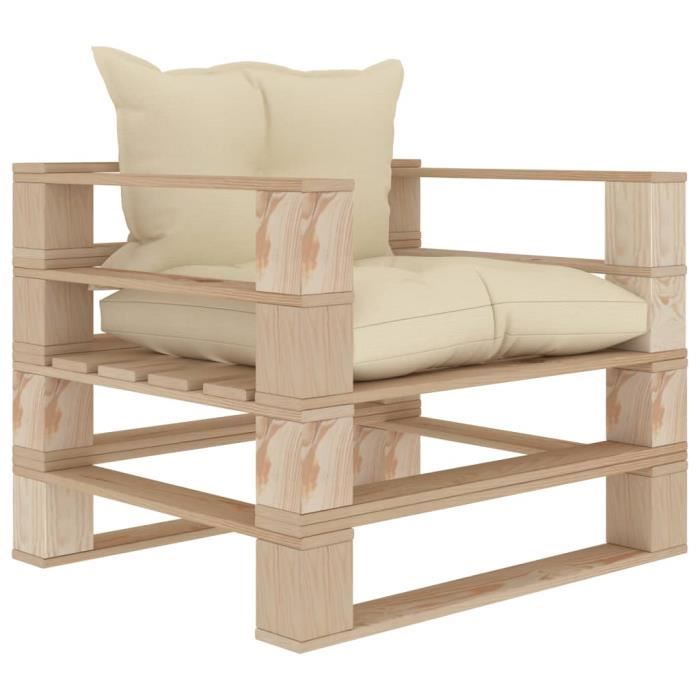 Vidaxl Canape Palette De Jardin Avec Coussins Creme Bois Achat Vente Salon Bas De Jardin Vidaxl Canape Palette De Cdiscount