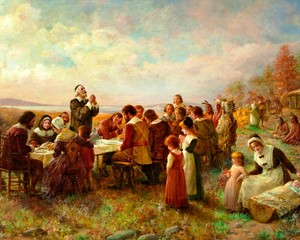 Just enter your email, and we'll let you know when there are interesting art history stories to read The First Thanksgiving Jennie Augusta Brownscombe, The First Thanksgiving,1914, Pilgrim Hall Museum, Plymouth, Massachusetts Currier and Ives, Home to Thanksgiving. MLA citation style Ferris, Jean Leon Gerome, Artist The first Thanksgiving/ JLG FerrisCleveland, Ohio The Foundation Press, Inc Photograph. English Caption The first Thanksgiving 1621 Pilgrims and Natives gather to share meal Date c1932 Artist Jean Leon Gerome Ferris, Artwork medium photomechanical print, halftone, color Category History, art and culture images > Library of Congress.