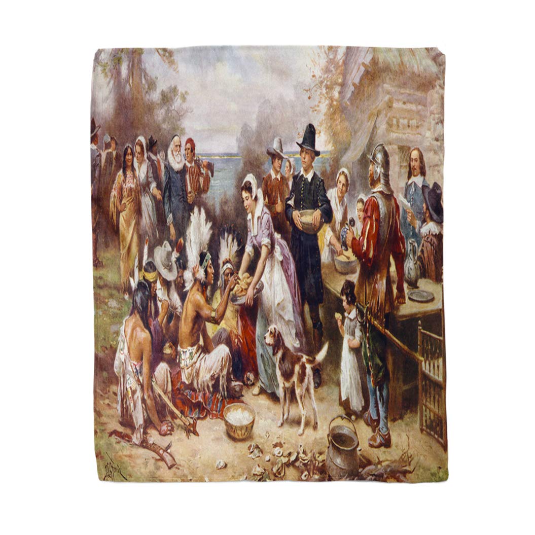 Amazon Com Rouihot 50x60 Inches Flannel Throw Blanket The First Thanksgiving 1621 Pilgrims And Natives Gather To Share A Meal Oil Painting Home Decorative Warm Cozy Soft Blanket For Couch Sofa Bed Home