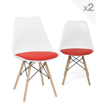 Chaise Scandinave Nasi Avec Coussin Lot De 2 Blanc Et Rouge Achat Prix Fnac