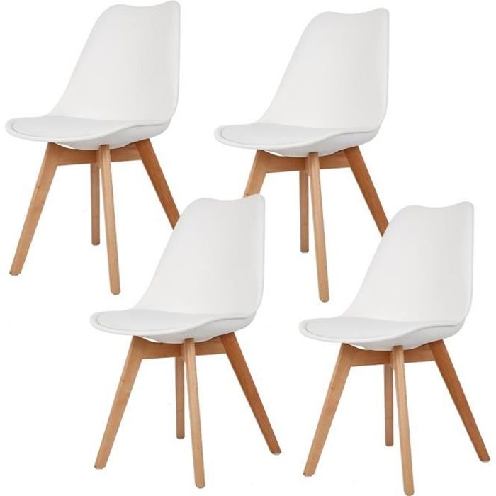 Lot De 4 Chaises Scandinaves Andrea Blanches Coussin Et Pieds Bois Achat Vente Chaise Soldes Sur Cdiscount Des Le Janvier Cdiscount