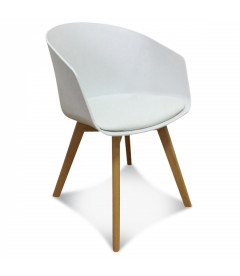 Chaise Scandinave Coque Blanche Et Pied Hetre Avec Coussin Dya Shopping Fr