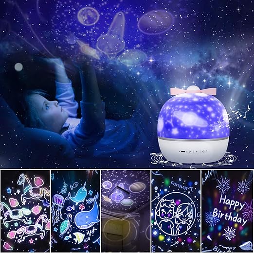 Fohyloy Projecteur Lumiere Bebe 3 Modeles 6 Films Magie 360 Rotation Projection Lampe Veilleuse Pour Fille Enfant Chambre Ciel Nuit Etoilee Chambre