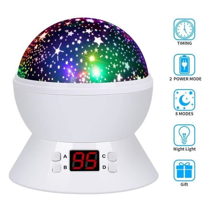 Veilleuse Enfant Lamp De Projection 360 Rotation Romantique Veilleuse Bebe Etoiles Lampes De Chevet Lampes D Ambiance Minuterie 4 Achat Vente Veilleuse Bebe Cdiscount