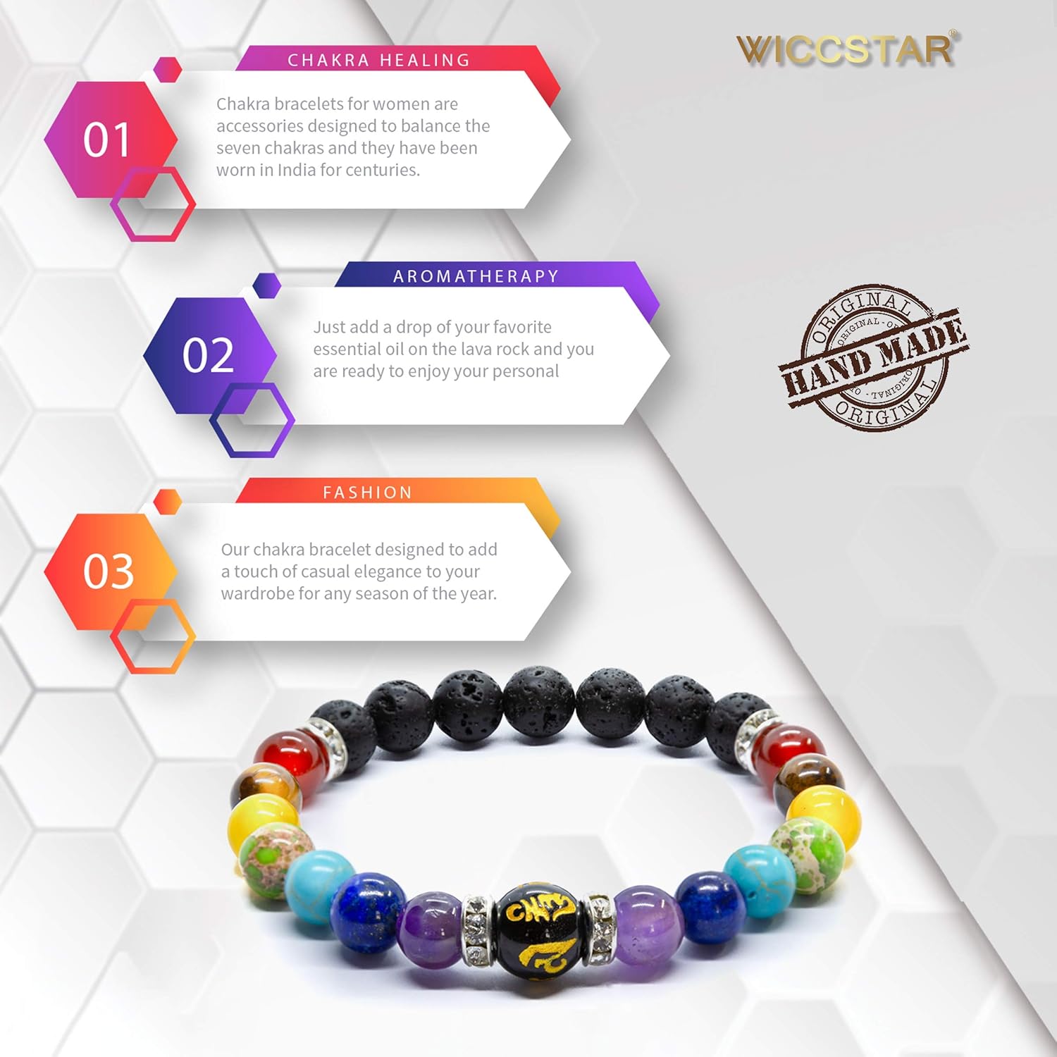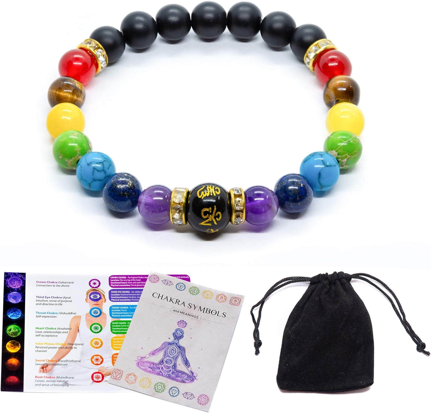 Wiccstar Double Chakra Bracelet En Pierre Naturelle Reiki Charme Avec La Carte De Signification Chakra Femme Bijoux