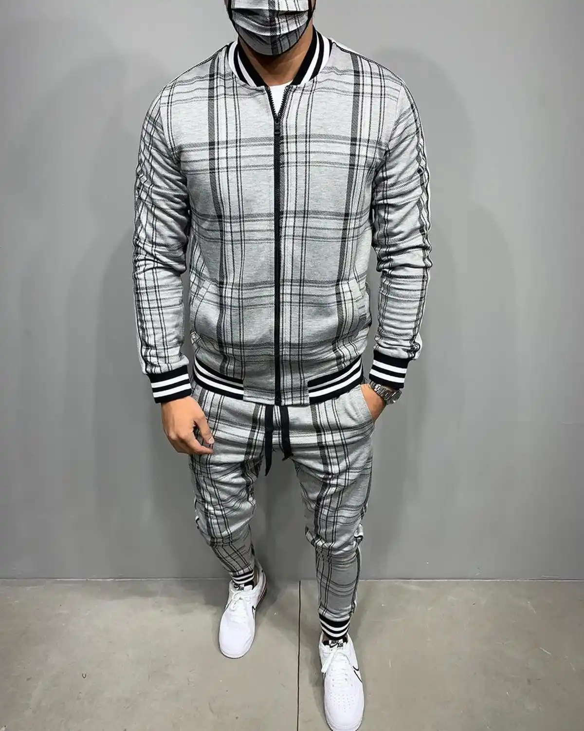 Ensembles Veste De Sport Pour Hommes A Carreaux 3d Ensemble Veste Pour Homme Survetement Street Style Fascise Tendance A La Mode Col Montant Et Fermeture Eclair Collection Vetement De Sport Aliexpress